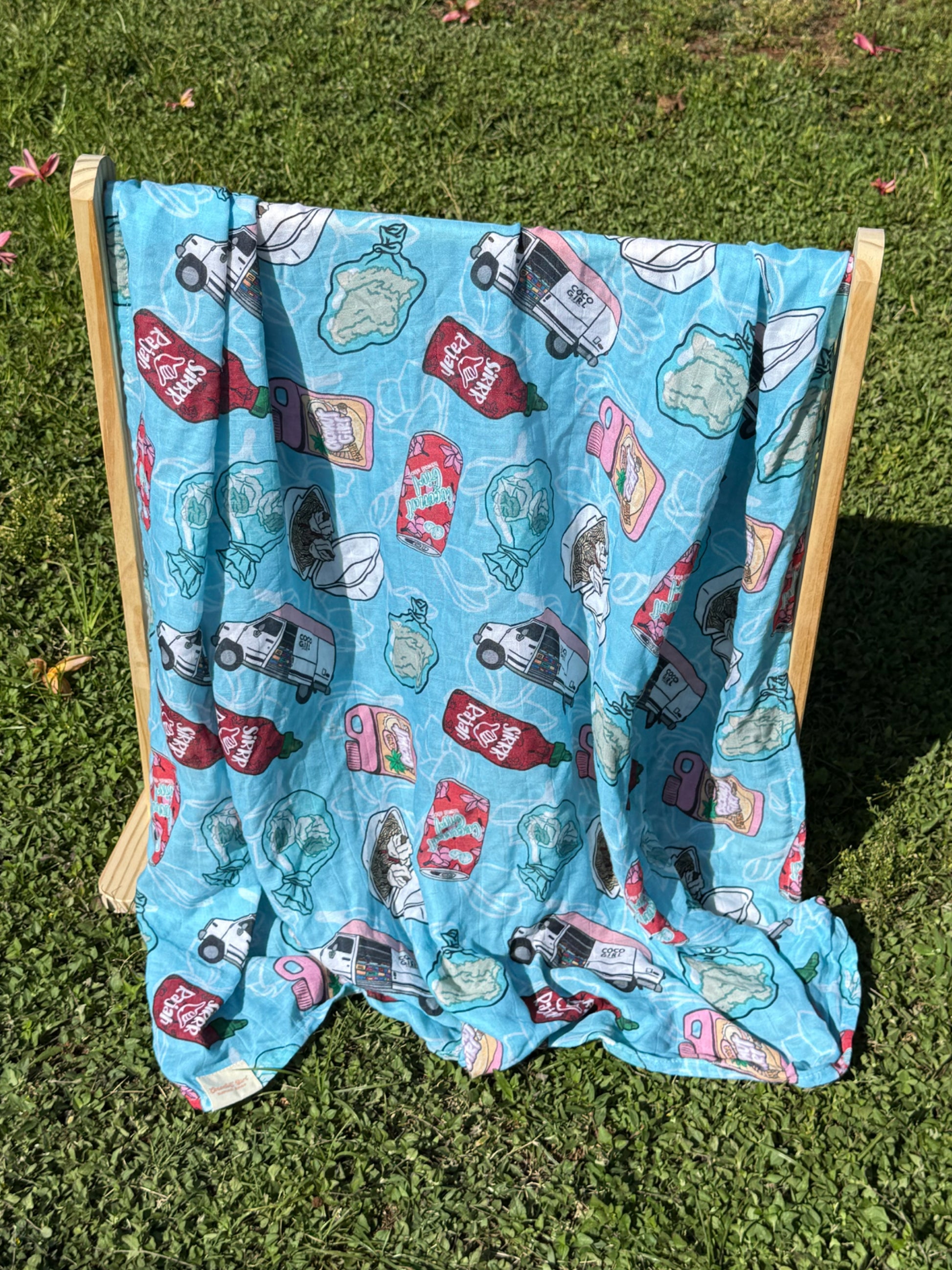 It's finally here! Our manapua truck print on our soft muslin swaddles!